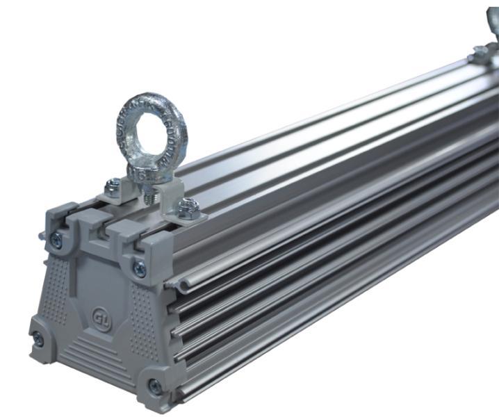 Корпус GL-PROM ECO 50 выполнен из анодированного алюминиевого профиля, который защищает от воздействия агрессивных сред и является эффективным радиатором для светодиодов. Конструктивные элементы изготовлены из листовой оцинкованной стали и окрашены атмосфероустойчивой порошковой краской. Торцевые части - из АБС-сополимера серого цвета. Монтаж осуществляется при помощи рым-болтов, установленных на корпусе светильника, что облегчает и ускоряет процесс установки на объекте. По желанию заказчика, есть возможность окрашивания осветительных приборов порошковой краской в требуемый цвет по шкале RAL.